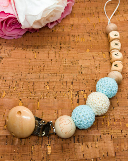 Aus Sicherheitsgründen dürfen die Schnullerketten eine Länge von 22 cm (von der Schlaufe bis zum Clip) nicht überschreiten. Aus diesem Grund kann es sein, dass deine Schnullerkette, je nach Länge des gewünschten Namen, vom ausgewählten Modell etwas abweichen kann.